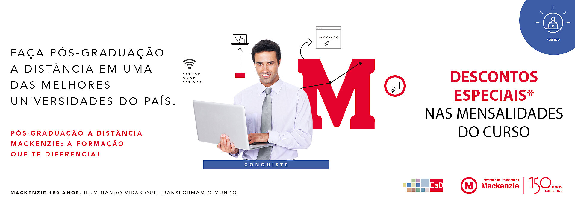 A Universidade Presbiteriana Mackenzie (UPM) está com as matrículas abertas da pós-graduação EaD para as turmas do mês de outubro. O processo de inscrição acontece até o dia 03 de outubro no site, com descontos especiais para matrículas antecipadas. As aulas começam no dia 18 de outubro.