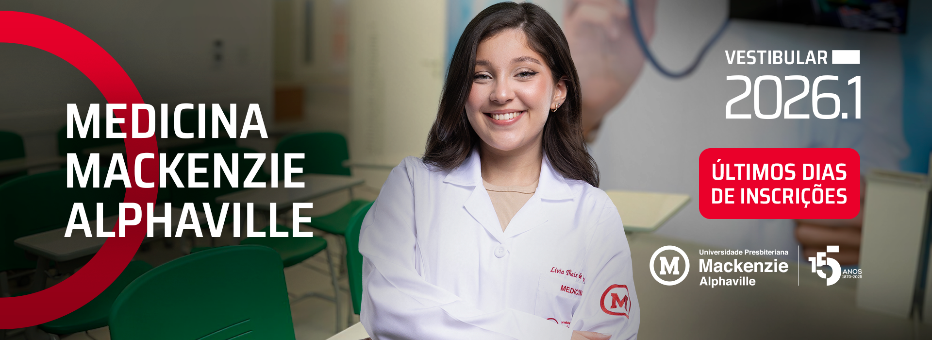 A Universidade Presbiteriana Mackenzie (UPM) está na reta final das inscrições para o Processo Seletivo 2026 do curso de Medicina, no campus Alphaville. Os candidatos têm até o dia 21 de outubro para se inscrever e garantir a participação na prova que está marcada para o dia 30 de outubro, em formato presencial. O aluno pode escolher o local de prova: na hora da inscrição, ele deve optar entre o campus Alphaville, Campinas e Higienópolis.