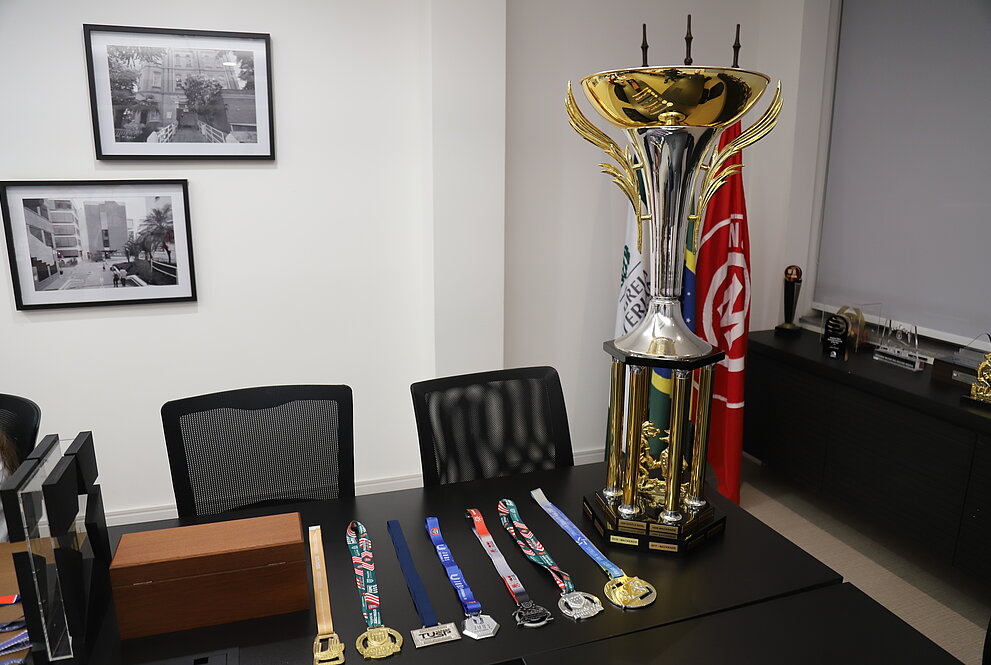 As seleções masculina e feminina de futebol da Universidade Presbiteriana Mackenzie (UPM) foram recebidas na última quarta-feira, 04 de junho, pelo reitor Marco Tullio de Castro Vasconcelos, em um encontro de celebração e diálogo.