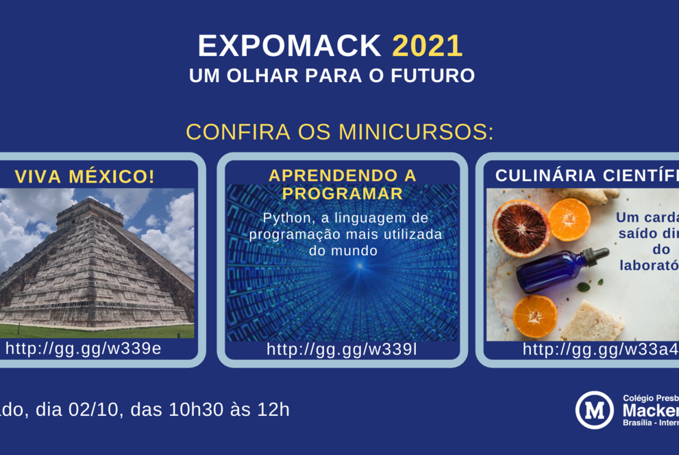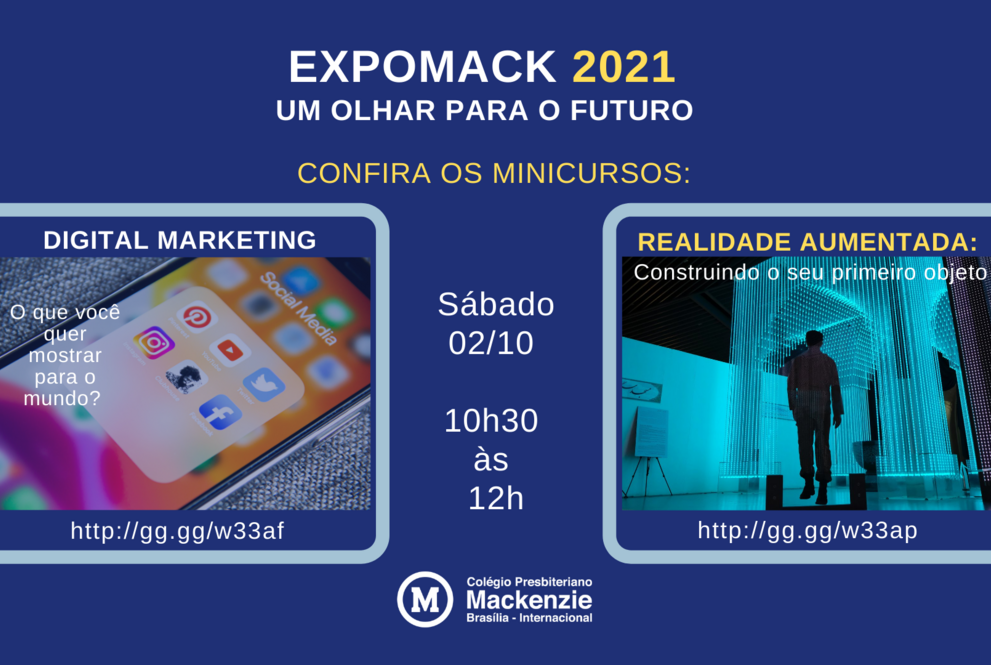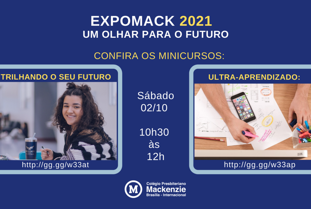 A Expomack 2021, Feira Cultural do Ensino Médio do Mackenzie Brasília, recebeu alunos, antigos alunos, pais, responsáveis e demais interessados para uma manhã de conversas sobre Um Olhar para o Futuro. O evento, gratuito e aberto à comunidade, teve participação de profissionais renomados do mercado e professores especialistas para um bate-papo informativo e reflexivo sobre o tema.