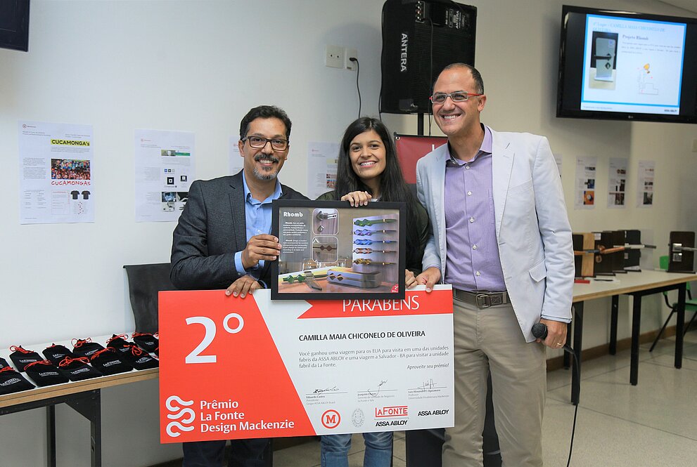 Ao todo, foram 19 projetos concorrentes e três premiados. Gabriela, a primeira colocada, ganhou uma viagem aos EUA para visitar uma das unidades fabris da Assa Abloy, e outra para Salvador (BA) para visitar a unidade fabril da La Fonte. Além disso, ela fará um estágio remunerado de seis meses na Unidade de Negócios La Fonte, em São Paulo (SP).