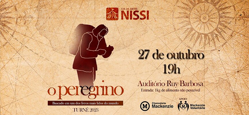 Apresentação: A convite da Chancelaria e da Capelania Mackenzie, a companhia cristã de teatro Nissi, no dia 27 de outubro às 19h, apresentará sua peça: O PEREGRINO, baseada em um dos livros mais lidos em todo mundo!