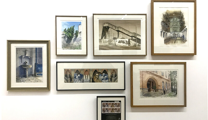 Na exposição, Bajzek selecionou trabalhos que retratam seu trabalho com a ilustração arquitetônica e com o desenho urbano, também conhecido como Urban Sketcher. “É uma prática espontânea das pessoas de estudar mesmo, de praticar o desenho de observação, feito na rua, mas que, ao longo dos anos, para mim e para alguns colegas, virou parte da profissão da gente”, explica o artista, ao apontar a diferença entre os campos, já que o primeiro seria mais relacionado a projetos de obras de arquitetura.