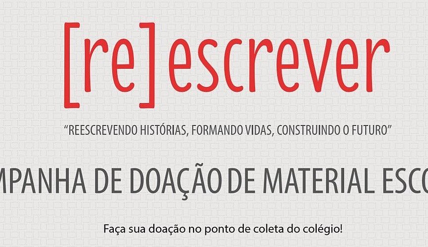 Entre os dias 10 de setembro e 31 de outubro, o Mackenzie Voluntário, junto com os Colégios Presbiterianos Mackenzie (CPM) das unidades de Brasília, Higienópolis, Palmas e Tamboré, realizam o projeto [re]escrever, campanha de arrecadação de material escolar.