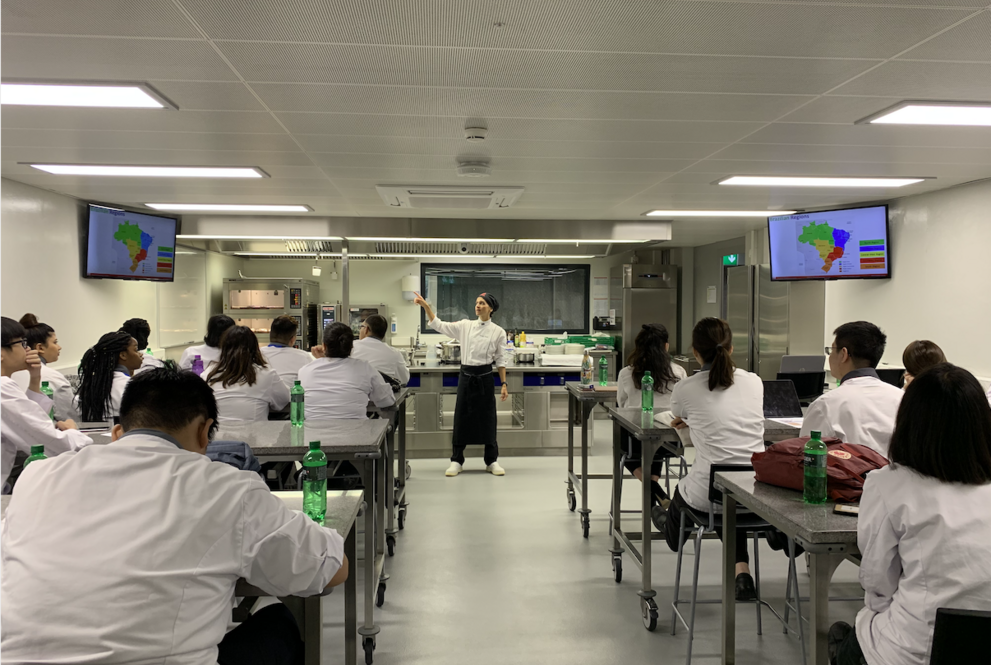 Em uma masterclass, Camila apresentou a gastronomia brasileira aos alunos da Culinary Arts Academy, escola na qual o Mackenzie tem um programa de internacionalização com o Curso de Tecnologia em Gastronomia. “Fiquei encantada com o interesse e participação de todos os alunos, além de toda a estrutura e apoio da escola. Foi um enorme prazer transmitir esse conhecimento a todos”, conta a coordenadora.