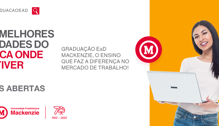 A Universidade Presbiteriana Mackenzie (UPM) está com inscrições abertas para Graduação EaD com início no 1° semestre de 2023. Para participar do processo seletivo 2023.1, o candidato deverá acessar o edital e se inscrever por meio do site, até 22 de janeiro de 2023.