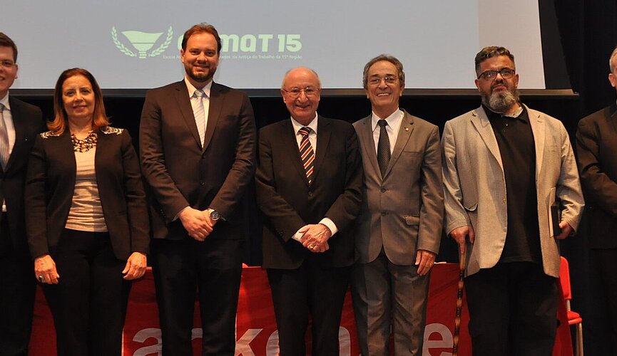 O professor, ao lado de Tereza Aparecida Asta Gemignani, desembargadora da 15ª região, realizou uma palestra sobre a Aplicação da proporcionalidade aos Direitos Sociais para um público de aproximadamente 400 pessoas.