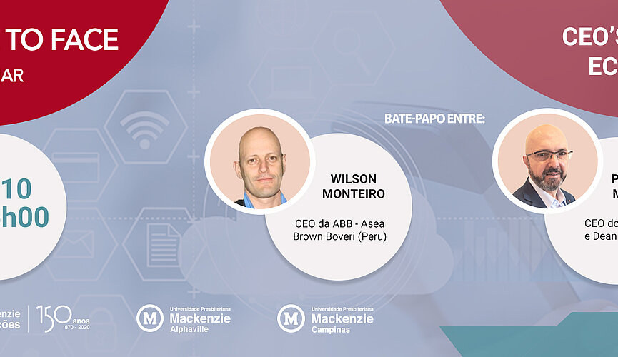 No dia 20 de outubro, a partir das 16h, acontece a 6ª edição do Mack Face to Face, com o tema "CEO'S DA NOVA ECONOMIA". O encontro on-line é promovido pelo Mackenzie Soluções, área de negócios do Instituto Presbiteriano Mackenzie (IPM), e a parceira PMHub, referência internacional na transformação das organizações e modelos de gestão agile, e tem como objetivo apresentar os cursos de Pós-Graduação dos campi Campinas e Alphaville da Universidade Presbiteriana Mackenzie (UPM).