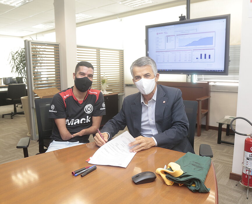 “Me considero parte da família Mackenzie. Quero agradecer a Deus por essa parceria, pois o Mackenzie me permitiu que a cada braçada eu pudesse exaltar o nome de Deus”, afirma o nadador, ao assinar a prorrogação do patrocínio.
