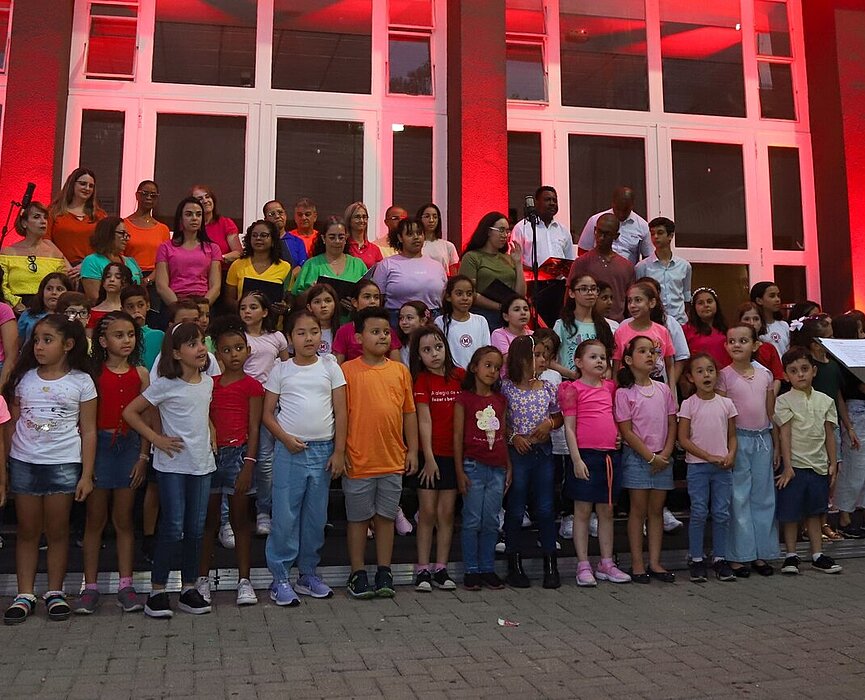 O maestro do Coral Infantil, Coralito e Jumack, Albino Carlos Alves, explicou que os ensaios foram feitos separadamente devido á variedade de grupos envolvidos. “Montei um kit de ensaio em pen-drive para as crianças treinarem em casa, os pais foram muito parceiros nesse aspecto. No começo, eles fazem bagunça, mas gostam de cantar, e para nós é um prazer tê-los conosco”, compartilhou.
