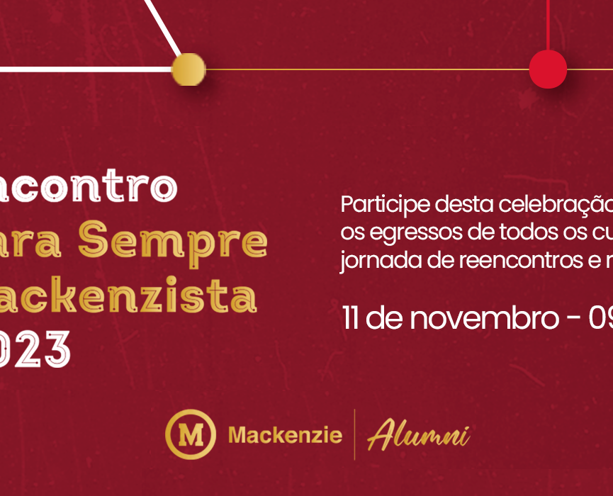 No dia 11 de novembro, sábado, o Mackenzie abre suas portas para o 1º Encontro Para Sempre Mackenzista, com o objetivo de reunir egressos de todas as unidades em uma jornada de reencontros, recordações e criação de novas memórias no campus Higienópolis da Universidade Presbiteriana Mackenzie (UPM). Para participar, se inscreva aqui.