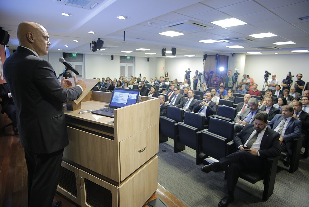 Um dos palestrantes foi o ministro do Supremo Tribunal Federal (STF), Alexandre de Moraes, que foi professor da Universidade Presbiteriana Mackenzie (UPM) antes de assumir. O magistrado fez uma enfática defesa da Constituição, como reguladora das políticas públicas, já que estas devem ser implementadas de acordo com regras previstas na Carta Magna.