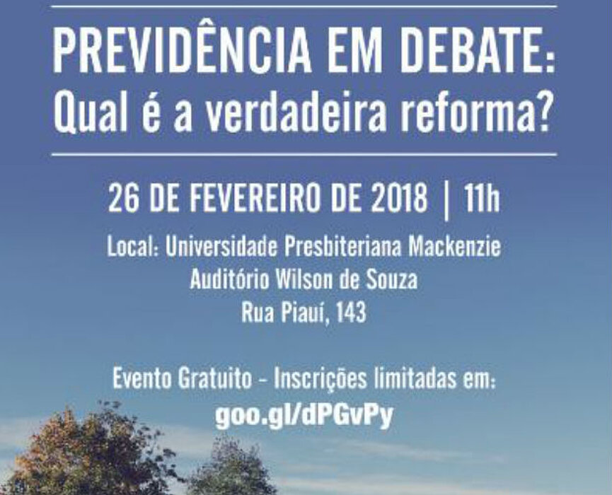 Nesta segunda-feira, 26 de fevereiro, o Centro Mackenzie de Liberdade Econômica realizou o evento "Previdência – Qual seria a verdadeira reforma?", às 11h, no Auditório Wilson de Souza, campus Higienópolis.