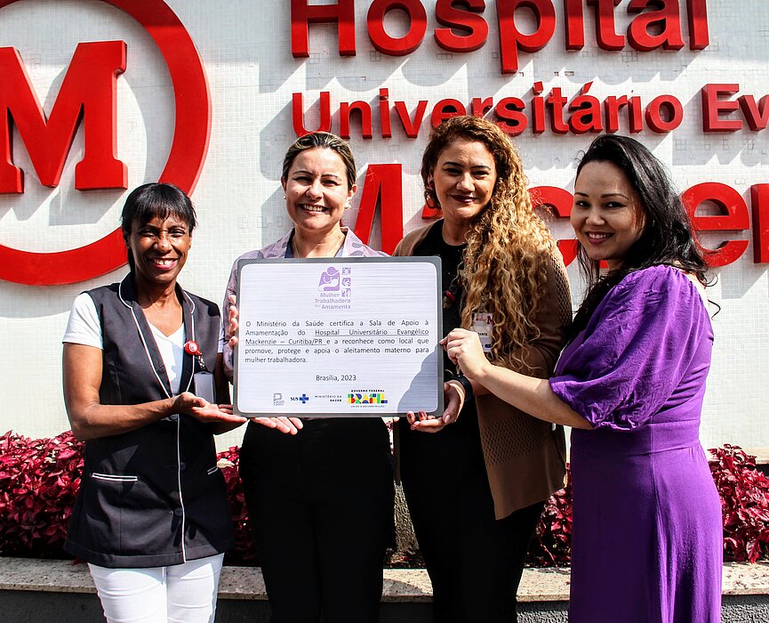 A manhã desta sexta-feira, 10 de novembro, foi especial para o Hospital Universitário Evangélico Mackenzie (HUEM). A instituição gerenciada pelo Instituto Presbiteriano Mackenzie (IPM) recebeu do Ministério da Saúde a certificação da Sala de Apoio à Mulher Trabalhadora que Amamenta. O certificado reconhece o Hospital como um local que promove, protege e apoia o aleitamento materno.