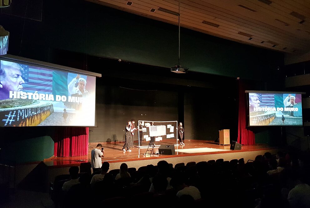 Brasília, 22 de maio de 2023 - Entre os dias 27 de abril e 3 de maio, os estudantes do terceiro ano do Colégio Presbiteriano Mackenzie Brasília apresentaram o “Um Mundo de Muros”. O projeto tem como objetivo trazer ao debate a situação de cidadãos impedidos de continuar em seu país ou de se refugiar em outras nações.