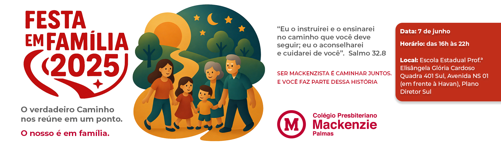 Educação Infantil Saiba Mais Ensino Fundamental I Saiba Mais Ensino Fundamental II Saiba Mais Ensino Médio Saiba Mais Notícias: Colégio PalmasColégios MackenzieAlunos do Colégio Presbiteriano Mackenzie e AEJA conquistam vagas no Vestibular 2025 14.04.2025 Celulares proibidos em sala de aula: conheça as adaptações do Colégio Mackenzie 11.02.2025 Aprovação na Universidade Federal de Tocantins 04.12.2024 VII Sarau Literário é realizado no Colégio Mackenzie Palmas 01.10.2024 Atletas do Colégio Mackenzie Palmas participarão dos Jogos Escolares Brasileiros 04.09.2024 Festa em Família agita Colégio Mackenzie em Palmas 25.05.2024 Colégio Mackenzie Palmas realiza Festa da Família 06.06.2023 Educação Básica do Mackenzie aprova alunos das 3ªs séries do Ensino Médio para Universidades 15.03.2023 Alunos do Colégio Mackenzie Palmas conquistam primeiro lugar na 1ª Etapa Estadual de Judô 2023 06.03.2023 Alunos do 8° Ano são introduzidos à lógica de programação 02.03.2023 Veja mais ...Colégio Mackenzie SP se destaca em Concurso Internacional de Artes Visuais 17.12.2025 Mackenzie conquista o pódio no Global Trade Challenge e consolida liderança nacional 16.12.2025 Colégio Mackenzie Agnes apresenta musical de Natal 16.12.2025 Corais do Mackenzie celebram o Natal com apresentações no Shopping Pátio Higienópolis 11.12.2025 Alunos do CPM Agnes lançam livros autorais em inglês na edição 2025 do “Growing Up” 11.12.2025 CPM Agnes promove atividade de educação financeira com visita à livraria 26.11.2025 Presidente do Supremo Concílio da IPB e Junta Patrimonial visitam o Colégio Mackenzie Agnes 18.11.2025 Mackenzie Tamboré recebe Moção de Congratulação na Câmara Municipal de Barueri 13.11.2025 Mackenzie Agnes realiza mais uma edição do Festival Mack Esportes 11.11.2025 Com recorde histórico, Colégio Mackenzie Brasília soma 596 medalhas nas Olimpíadas do Conhecimento 10.11.2025 Veja mais ... Conheça o Mackenzie - Palmas