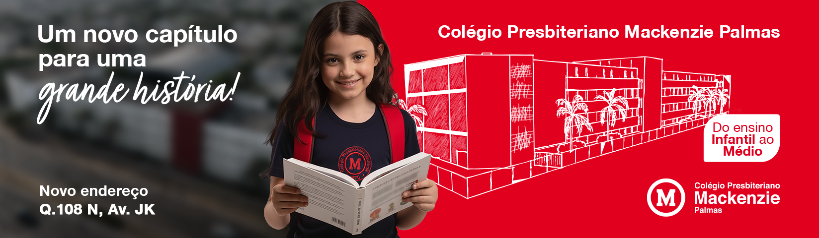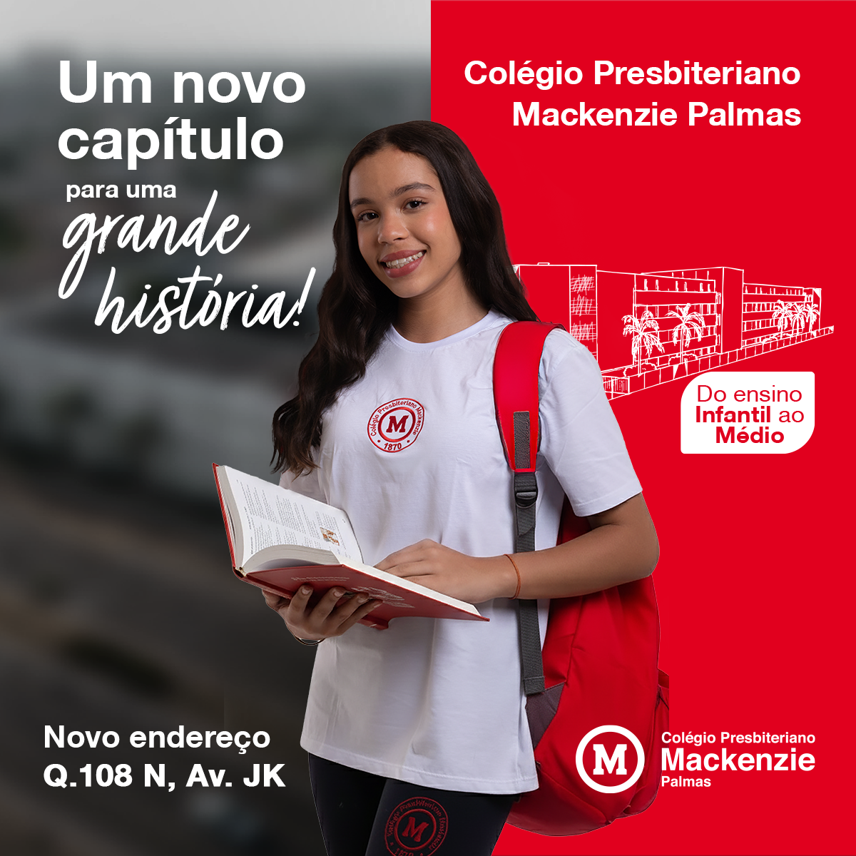 Educação Infantil Saiba Mais Ensino Fundamental I Saiba Mais Ensino Fundamental II Saiba Mais Ensino Médio Saiba Mais Notícias: Colégio PalmasColégios MackenzieAlunos do Colégio Presbiteriano Mackenzie e AEJA conquistam vagas no Vestibular 2025 14.04.2025 Celulares proibidos em sala de aula: conheça as adaptações do Colégio Mackenzie 11.02.2025 Aprovação na Universidade Federal de Tocantins 04.12.2024 VII Sarau Literário é realizado no Colégio Mackenzie Palmas 01.10.2024 Atletas do Colégio Mackenzie Palmas participarão dos Jogos Escolares Brasileiros 04.09.2024 Festa em Família agita Colégio Mackenzie em Palmas 25.05.2024 Colégio Mackenzie Palmas realiza Festa da Família 06.06.2023 Educação Básica do Mackenzie aprova alunos das 3ªs séries do Ensino Médio para Universidades 15.03.2023 Alunos do Colégio Mackenzie Palmas conquistam primeiro lugar na 1ª Etapa Estadual de Judô 2023 06.03.2023 Alunos do 8° Ano são introduzidos à lógica de programação 02.03.2023 Veja mais ...Aluno do Mackenzie Agnes disputará o Campeonato Brasileiro de Hóquei sobre Patins 05.03.2026 Sem telas! Um ano da lei que proíbe celulares nas escolas 12.02.2026 Mackenzie Agnes inicia ano letivo de 2026 em parceria com as famílias 27.01.2026 Mackenzie Agnes destaca o papel essencial da ludicidade na formação pedagógica e social 14.01.2026 Colégio Mackenzie SP se destaca em Concurso Internacional de Artes Visuais 17.12.2025 Mackenzie conquista o pódio no Global Trade Challenge e consolida liderança nacional 16.12.2025 Colégio Mackenzie Agnes apresenta musical de Natal 16.12.2025 Corais do Mackenzie celebram o Natal com apresentações no Shopping Pátio Higienópolis 11.12.2025 Alunos do CPM Agnes lançam livros autorais em inglês na edição 2025 do “Growing Up” 11.12.2025 CPM Agnes promove atividade de educação financeira com visita à livraria 26.11.2025 Veja mais ... Conheça o Mackenzie - Palmas