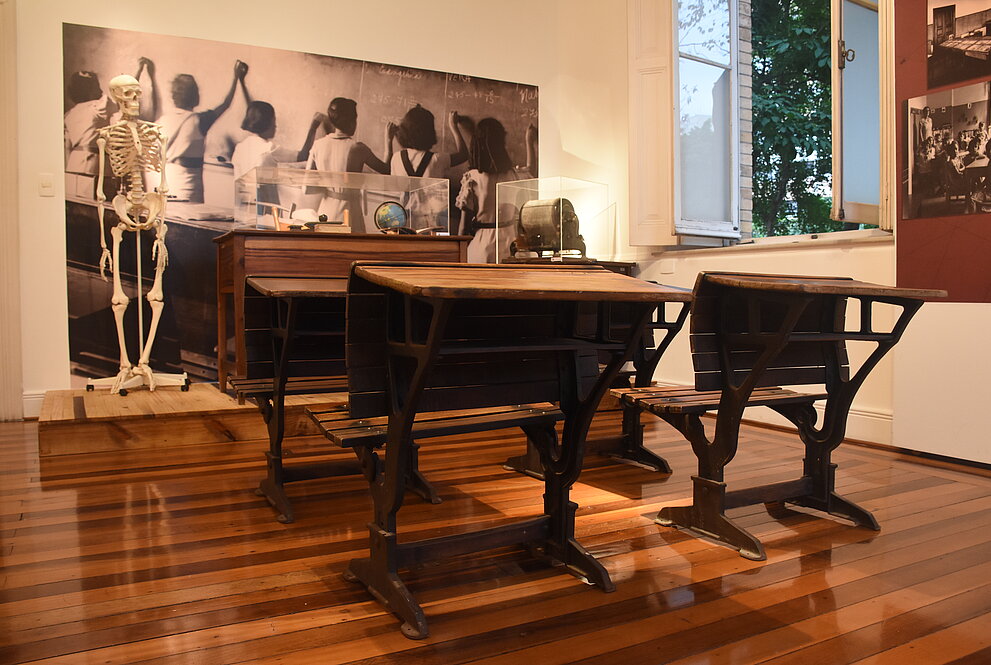 Abrunhosa pontua que a exposição tem um foco maior na fase inicial, contando a trajetória da escolinha da professora Mary Ann, como virou Escola Americana, tornando-se o Colégio Presbiteriano Mackenzie.