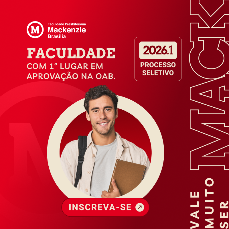 Graduação Vestibular Especialização Nossos Cursos Extensão Cursos de Extensão + Mídias / Notícias Conselhos de Administração e de Ciências Contábeis firmam parceria com Faculdade Presbiteriana Mackenzie em Brasília 11.04.2025 Ministro André Mendonça participa de Aula Magna da Faculdade Mackenzie Brasília 12.02.2025 Celebração do Dia de Ação de Graças é realizada no novo campus da FPMB 04.12.2024 Inscrições abertas para curso gratuito aos magistrados e assessores com foco em judicialização na saúde 25.11.2024 Renomados juristas participam do lançamento de obra literária sobre os 35 anos do STJ 07.11.2024 Docente da Faculdade Mackenzie Brasília participa do 2º Simpósio Liberdade Econômica 07.11.2024 Experiência Mackenzie: alunos do ensino médio conhecem estrutura da Faculdade em Brasília 28.10.2024 Fórum de Contadores Governamentais da América Latina conta com participação de professor da Faculdade Presbiteriana Mackenzie Brasília 17.10.2024 Alunas e funcionárias da Faculdade Mackenzie Brasília participam da Pink For Life Run 10.10.2024 Professor da Faculdade Mackenzie Brasília participa do maior evento contábil do Brasil 04.10.2024 Veja mais ...