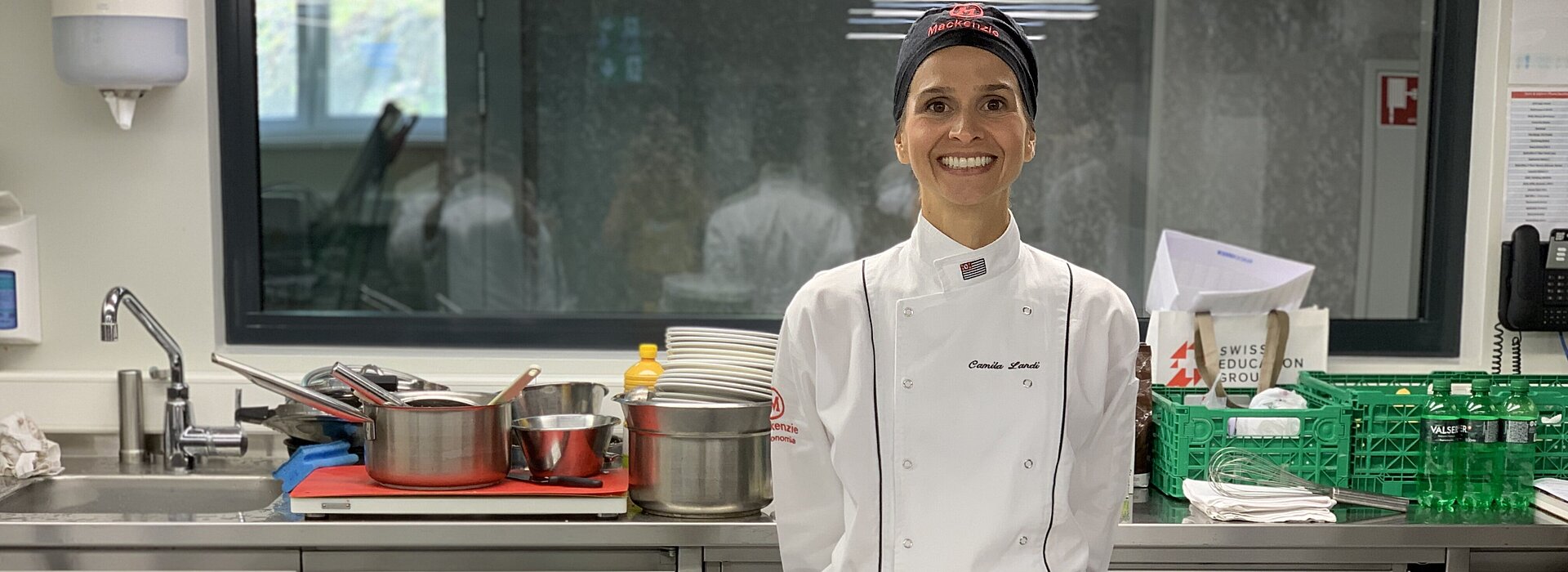 A coordenadora do curso de Tecnologia em Gastronomia da Universidade Presbiteriana Mackenzie (UPM), Camila Landi, esteve na Suíça, no mês de julho, a convite da Swiss Education Group - SEG, parceira da UPM, para ministrar uma aula sobre cozinha brasileira.