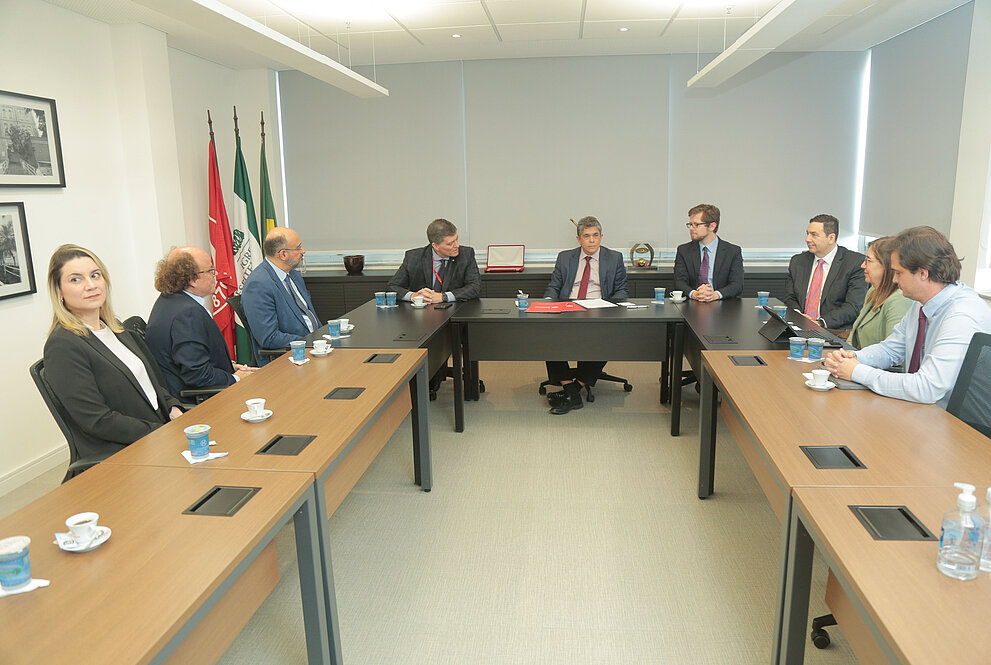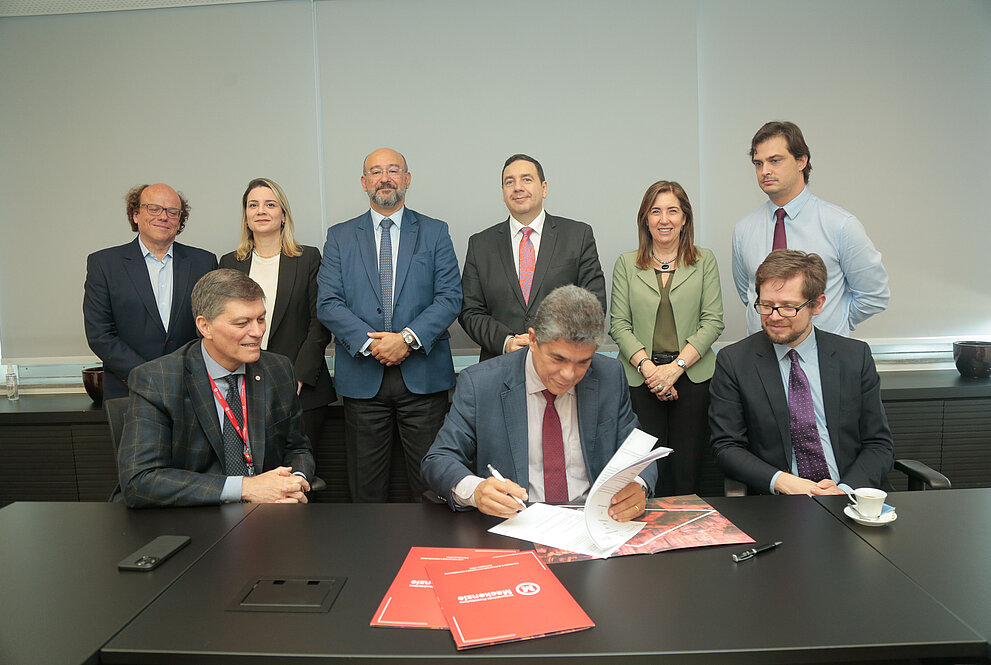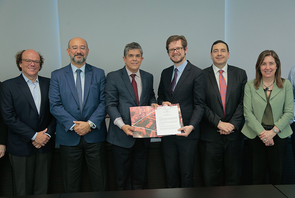Estiveram presentes na assinatura do acordo: o pró-reitor de Pesquisa e Pós-Graduação, Felipe Chiarello; a pró-reitora de Graduação, Jannete Brunstein; o coordenador da COI, Pedro Buck; o analista de mobilidade academia do EducationUSA, David Madeiros; e a professora da FDir, Lourdes Regina Jorgeti.