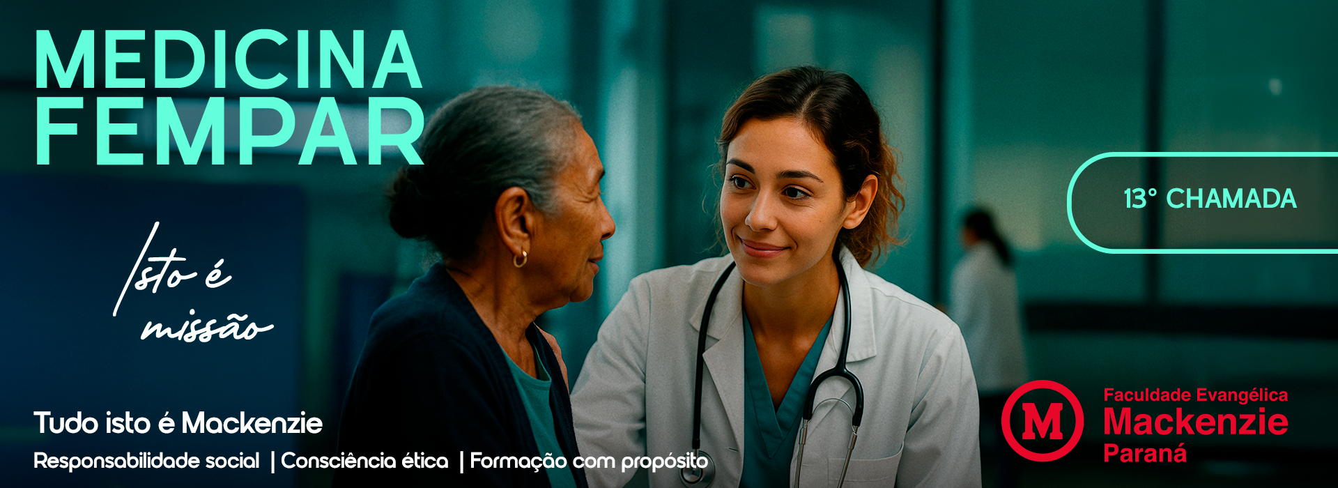A Faculdade Evangélica Mackenzie do Paraná (FEMPAR), divulga a relação dos aprovados em DÉCIMA TERCEIRA CHAMADA, que se submeteram ao Processo Seletivo 2026 do Curso de Medicina, realizado em 28 de setembro de 2025, conforme estabelecido no EDITAL Nº 152/FEMPAR-DG/2025.
