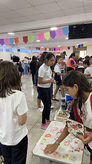 Durante a Feira cada turma pode vender em "sua banca" os produtos que eles mesmos confeccionaram, prepararam ou compraram, com intuito de comercializar e compartilhar suas experiências com seus colegas.