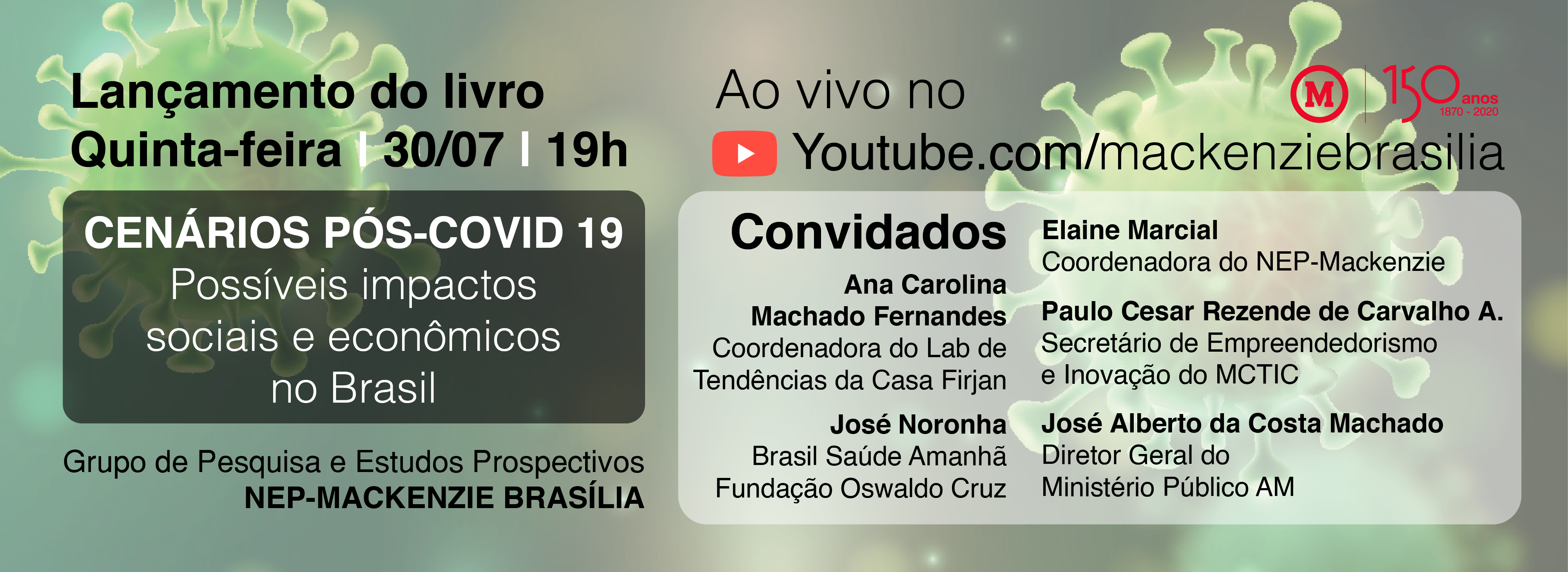 Durante 2020, que marca os 150 anos do Mackenzie, a Universidade Presbiteriana Mackenzie (UPM) transmitirá ao vivo, às segunda-feiras, o podcast,…