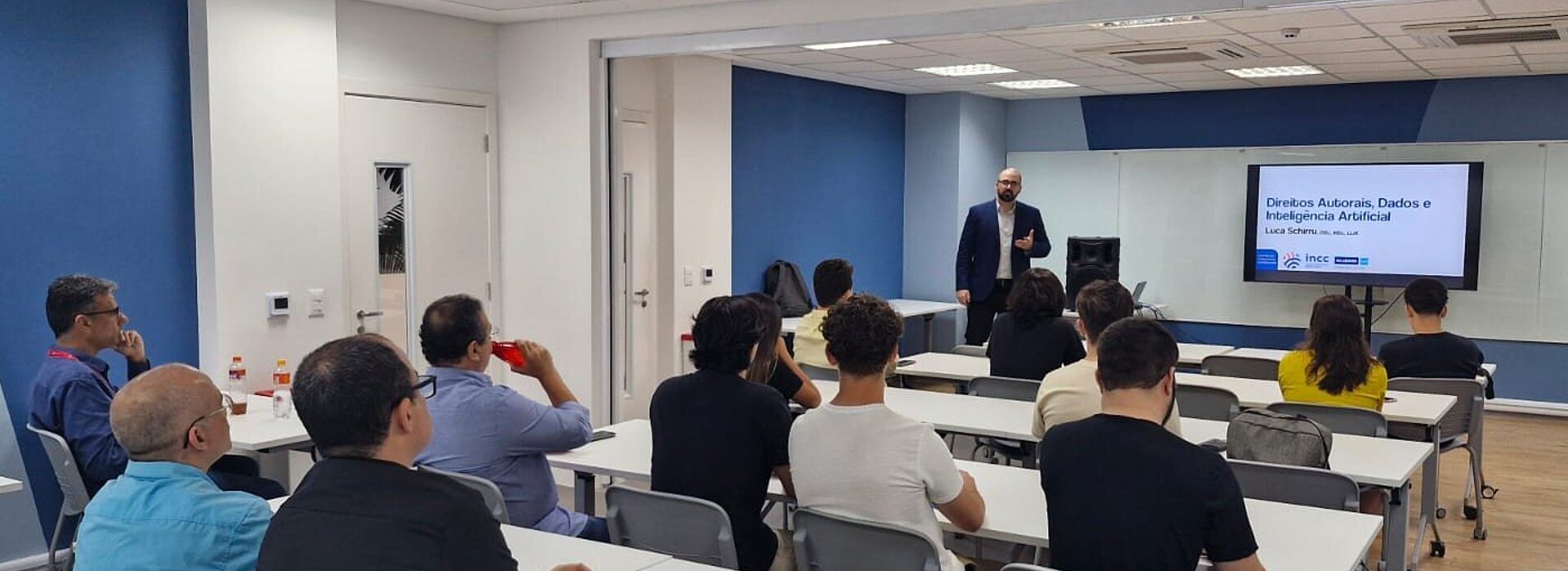 O especialista Luca Schirru, coordenador de pesquisa do Centre on Knowledge Governance, abriu o encontro falando sobre Direitos Autorais, Dados e Inteligência Artificial, abordando as implicações legais e éticas do uso de dados e da produção de conteúdo por sistemas de IA. Em seguida, o Head de Inovação da empresa Smarthis, Luiz Pinho, explicou como a instituição apoia a transformação digital de grandes empresas utilizando dados, automações e IA.