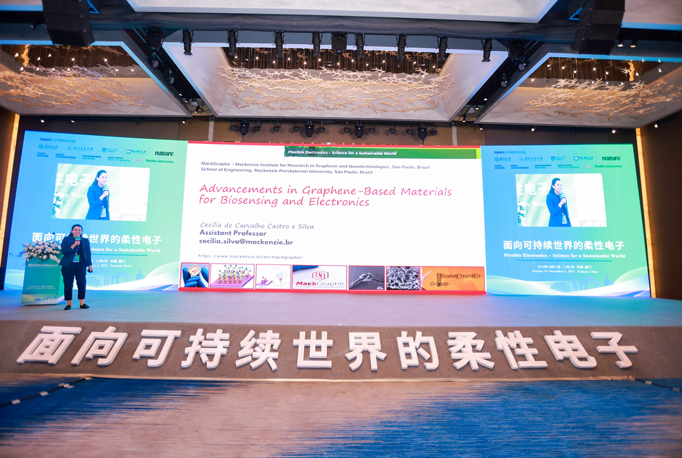 A professora da Escola de Engenharia (EE) da Universidade Presbiteriana Mackenzie (UPM), Cecília Castro e Silva, pesquisadora no Instituto Mackenzie de Pesquisa em Grafeno e Nanotecnologias (MackGraphe), do Instituto Presbiteriano Mackenzie (IPM), participou de uma das mais prestigiadas conferências científicas mundiais, a Nature Conference: Flexible Electronics – Science for a Sustainable World