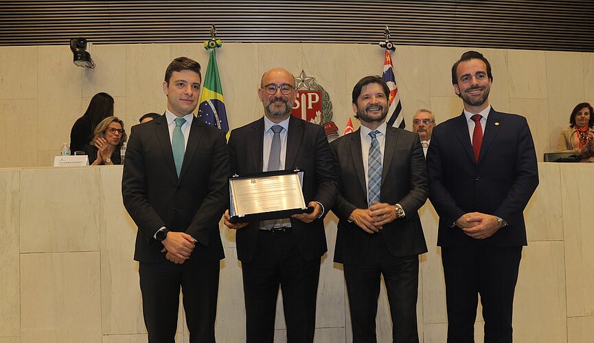 Além de homenageado, o pró-reitor Felipe Chiarello representou a reitoria da UPM e destacou a presença dos professores da FDir na sede da Alesp. “Eu sempre penso no quanto esse amor e essa sensação de pertencimento, que passa por toda essa história, passa também pelas pessoas que constroem o dia a dia dessa instituição”.