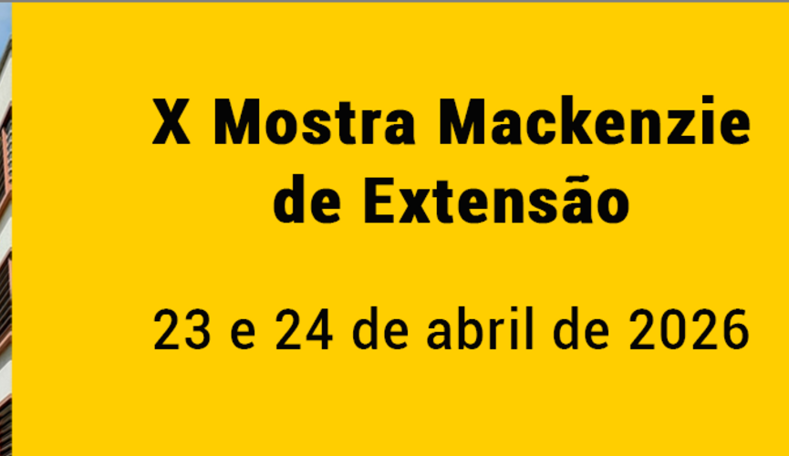 Nos dias 23 e 24 de abril, a Universidade Presbiteriana Mackenzie (UPM) realizará a X Mostra Mackenzie de Extensão no campus Higienópolis. O evento reunirá projetos extensionistas em andamento desenvolvidos por todas as unidades da UPM.