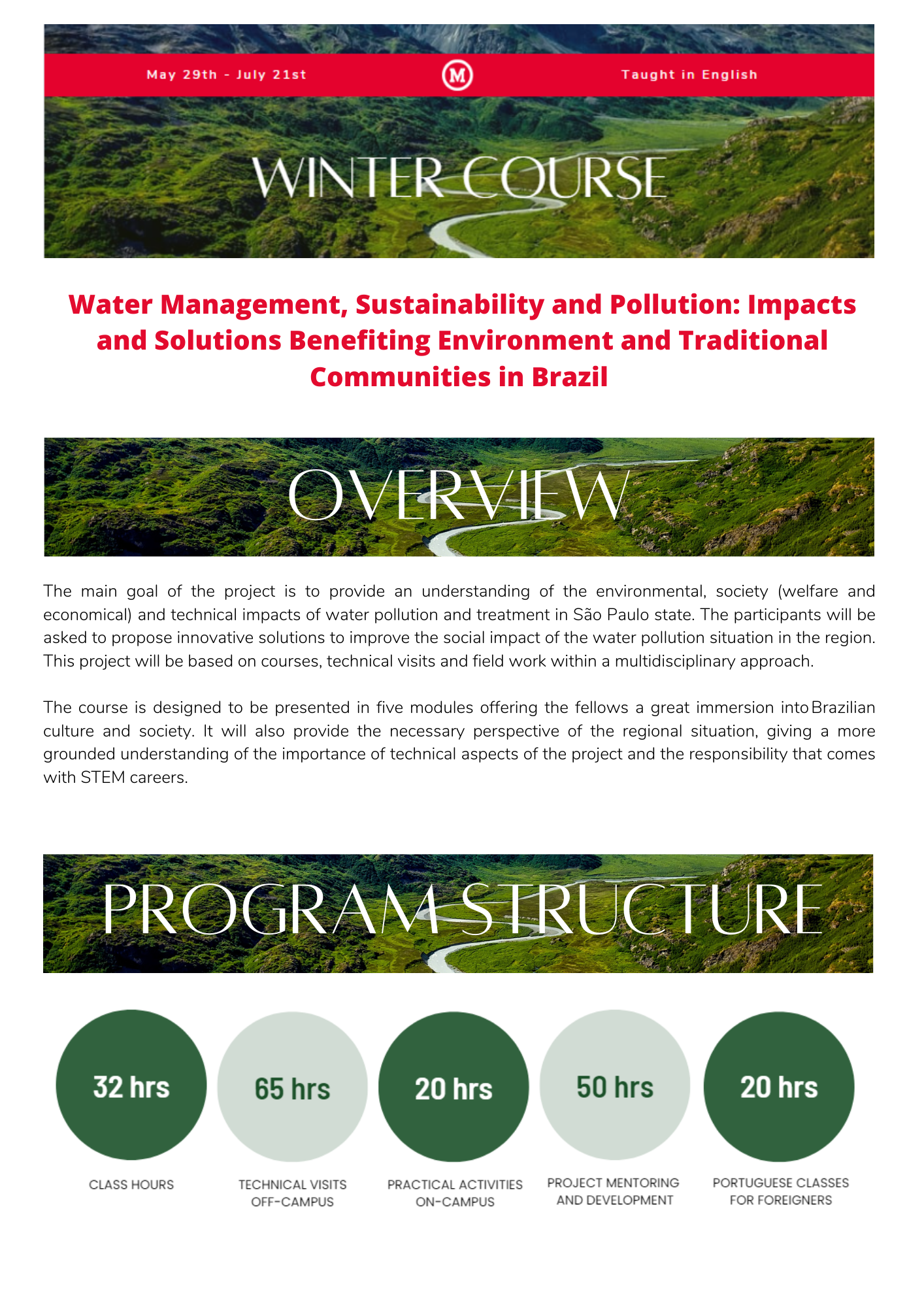 The main objective of the project was to provide an understanding of the environmental, social (welfare and economic) and technical impacts of water pollution and treatment in the state of São Paulo. Participants were invited to propose innovative solutions to improve the social impact of the water pollution situation in the region.