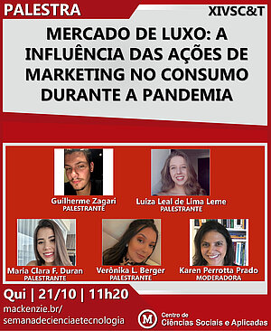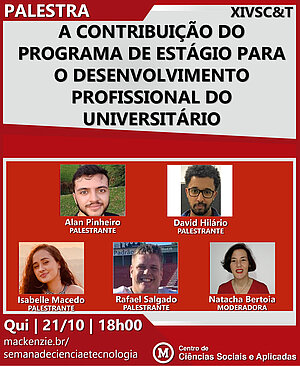 O Centro de Ciências Sociais e Aplicadas (CCSA) da Universidade Presbiteriana Mackenzie realiza XIV edição da Semana de Ciência e Tecnologia, durante os dias 19 a 22 de outubro de 2021.