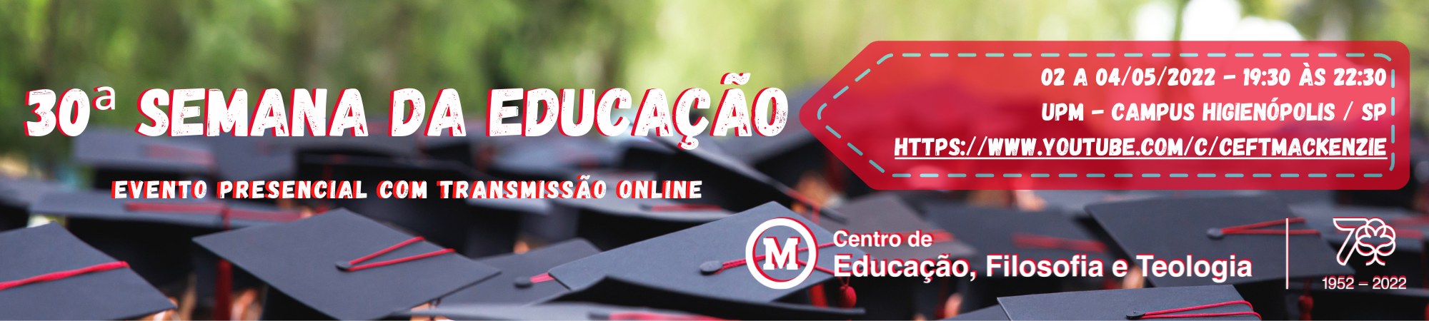 É neste contexto que a “30ª Semana da Educação” tem por objetivo, entre outros, refletir sobre a prática pedagógica frente às múltiplas linguagens referenciadas ao longo da Educação Infantil e do Ensino Fundamental e Médio, fortalecendo a formação de licenciandos, e assim, oferecendo referências para o aperfeiçoamento das intervenções em sala de aula. Além disso, é fundamental propiciar aos futuros professores, a compreensão de sua capacidade profissional para atuarem em ambientes escolares ou não escolares, conscientizando-os dos desafios que enfrentarão em cenários sócio–educacionais dinâmicos e desafiadores.