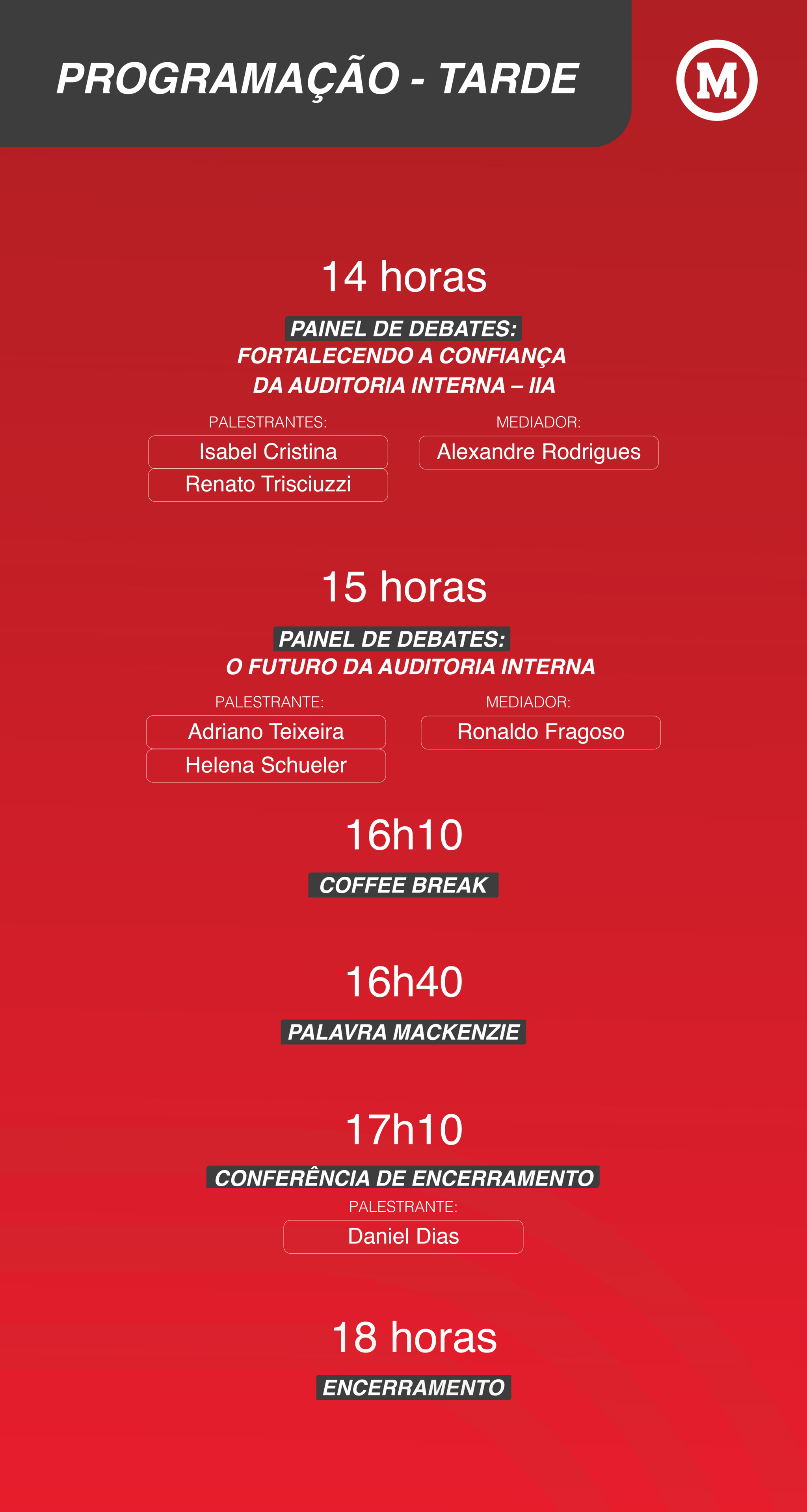 Consulte abaixo a programação completa do Seminário Mackenzie de Auditoria Interna e Integridade 2025