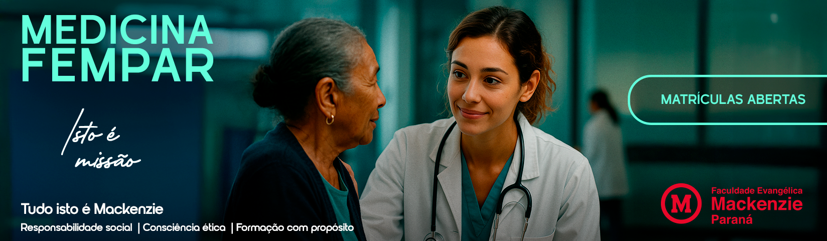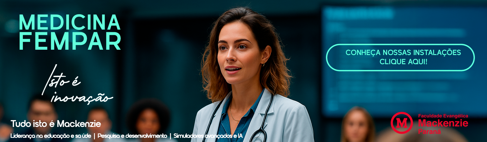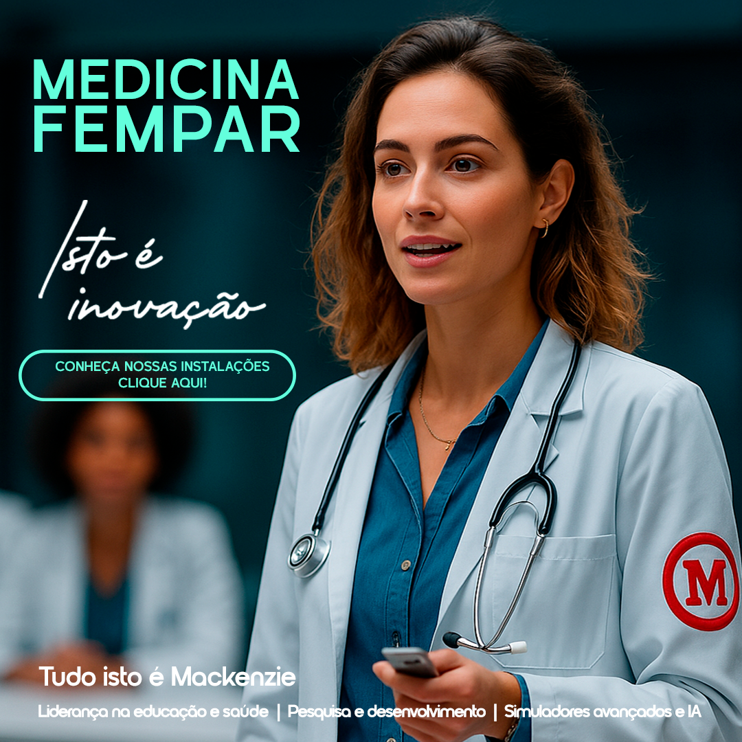 VestibularInformações sobre o Vestibular de MedicinaCurso de MedicinaConheça os diferenciais da Medicina no MackenziePós-GraduaçãoMestrado e Doutorado nota 4 na avaliação da CAPESLaboratóriosEquipados e modernos laboratórios dão suporte às aulas de MedicinaConvêniosConheça nossos Convênios Internacionais e NacionaisAtividades Complementares Saiba mais sobre todas as atividades complementares oferecidas, dentro ou fora da instituição. Mídias e Notícias REAJUSTE DAS MENSALIDADES PARA VETERANOS 12.11.2025 HUEM inova com Torre 3D para cirurgias de alta complexidade 11.11.2025 HUEM é destaque no maior congresso de medicina intensiva da América Latina 11.11.2025 RESULTADO DO PROCESSO SELETIVO DO VESTIBULAR 2026 FEMPAR 07.11.2025 Congresso Científico da FEMPAR chega à 39ª edição 04.11.2025 PROCESSO SELETIVO DO PROGRAMA DE PÓS-GRADUAÇÃO EM PRINCÍPIOS DA CIRURGIA – Nível Doutorado 04.11.2025 AVC: neurologista alerta para prevenção e rapidez no atendimento médico: 'tempo é crucial' 30.10.2025 VALOR DAS MENSALIDADES INGRESSANTES DO 1º E 2º SEMESTRE DE 2026. 28.10.2025 Coordenadora do Banco de Multitecidos Humanos representa HUEM em Congresso 24.10.2025 RESULTADO PS PROJETO DE EXTENSÃO CURSO DE MEDICINA 23.10.2025 Veja mais ... Um estudo, várias vidas salvas.Doação de Corpo em Vida