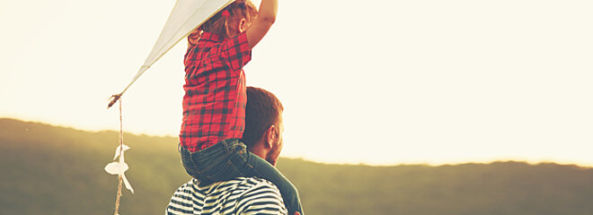 mulher segura seu filho no alto na praia com por do sol ao fundo