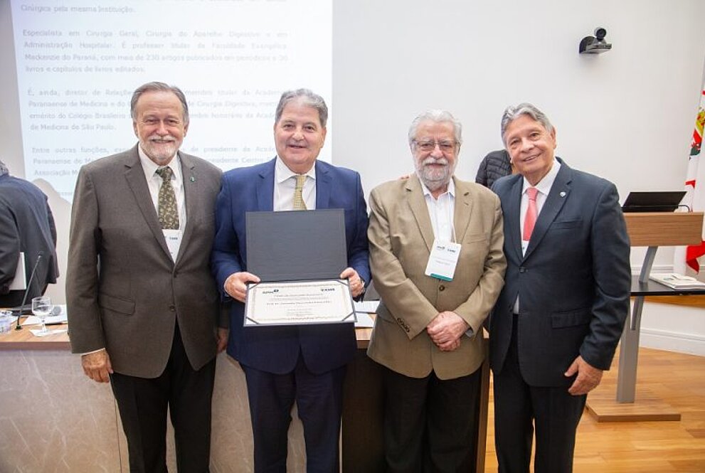 No último dia 26 de abril, a Associação Paulista de Medicina homenageou o Acadêmico Jurandir Marcondes Ribas Filho, membro titular da Academia Paranaense de Medicina e do Colégio Brasileiro de Cirurgia Digestiva, com o título de associado honorário. Este reconhecimento, concedido a personalidades médicas, se deve à contribuição para a Medicina e para o associativismo médico.