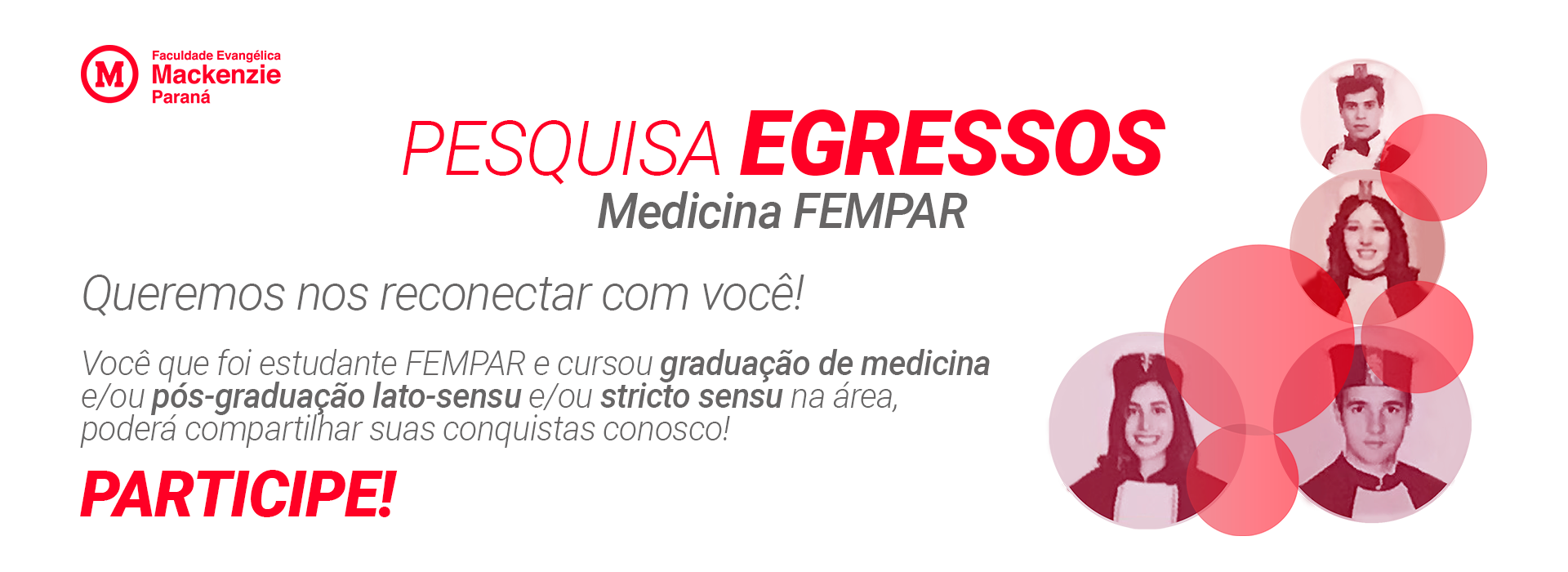 Você que foi estudante FEMPAR e cursou graduação de Medicina e/ou pós-graduação lato-sensu e/ou stricto sensu na área, poderá compartilhar suas conquistas conosco!