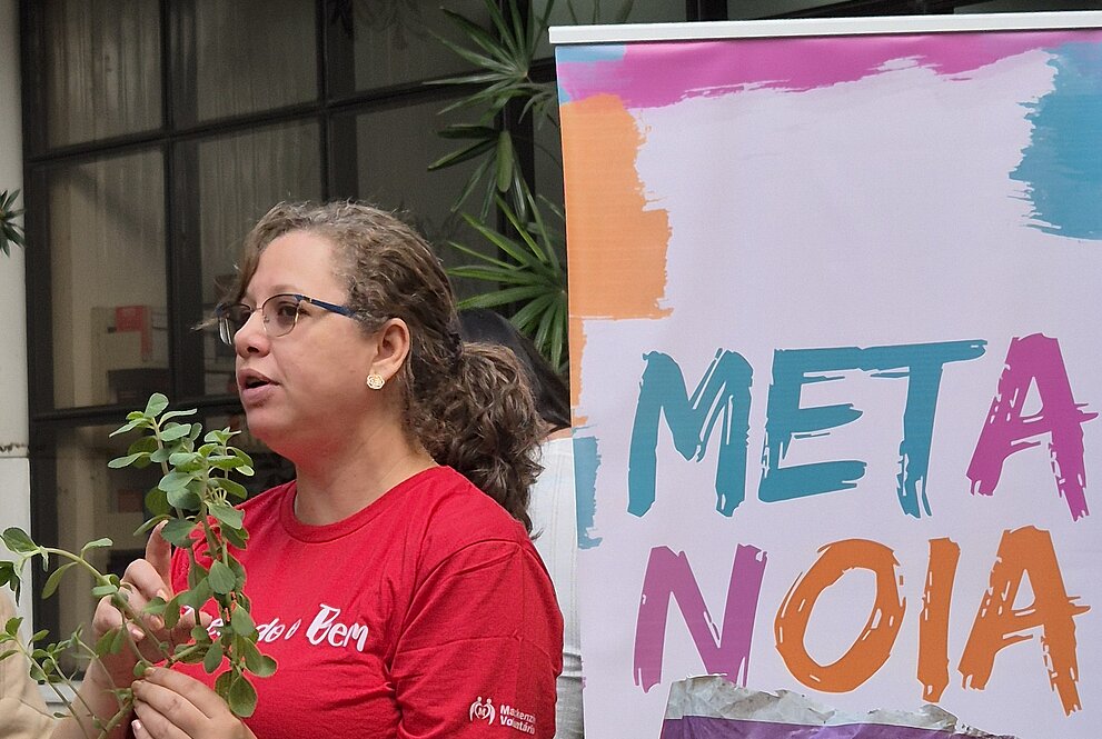 “Tenho 45 anos e nunca presenciei um momento tão mágico. Estou maravilhada com essa oportunidade. A oficina de horta foi maravilhosa, porque é um momento de reconexão. A gente estuda, trabalha, corre de um lado para o outro e ter esse contato com a terra, com as pedras e com as plantas foi muito gostoso.”