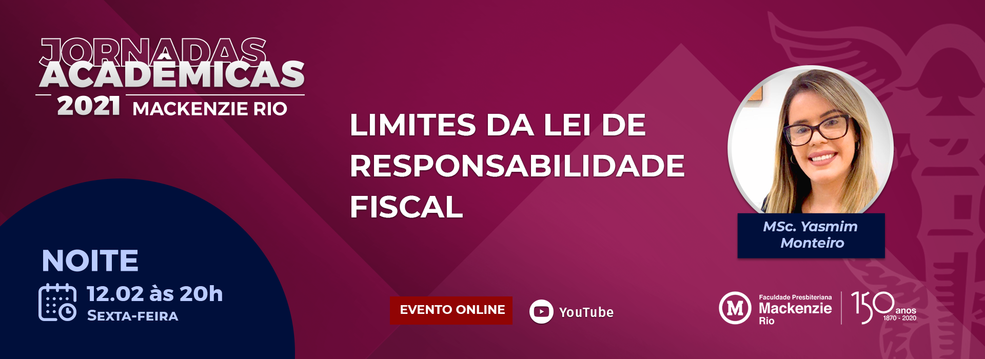 O evento será 100% online e GRATUITO no Canal do Youtube: Mackenzie Rio Oficial.