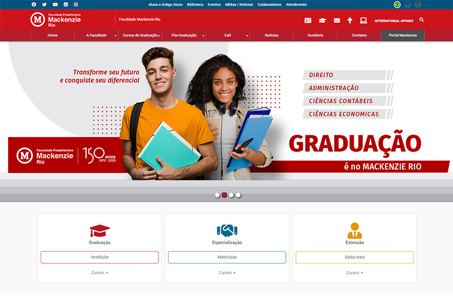 A Faculdade Presbiteriana Mackenzie Rio INOVOU em seu processo seletivo 2020.2 e as inscrições e provas serão realizadas 100% ONLINE.