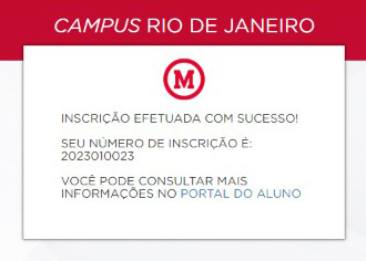 7º PASSO: Ao concluir a inscrição a mensagem descrita na imagem irá aparecer.