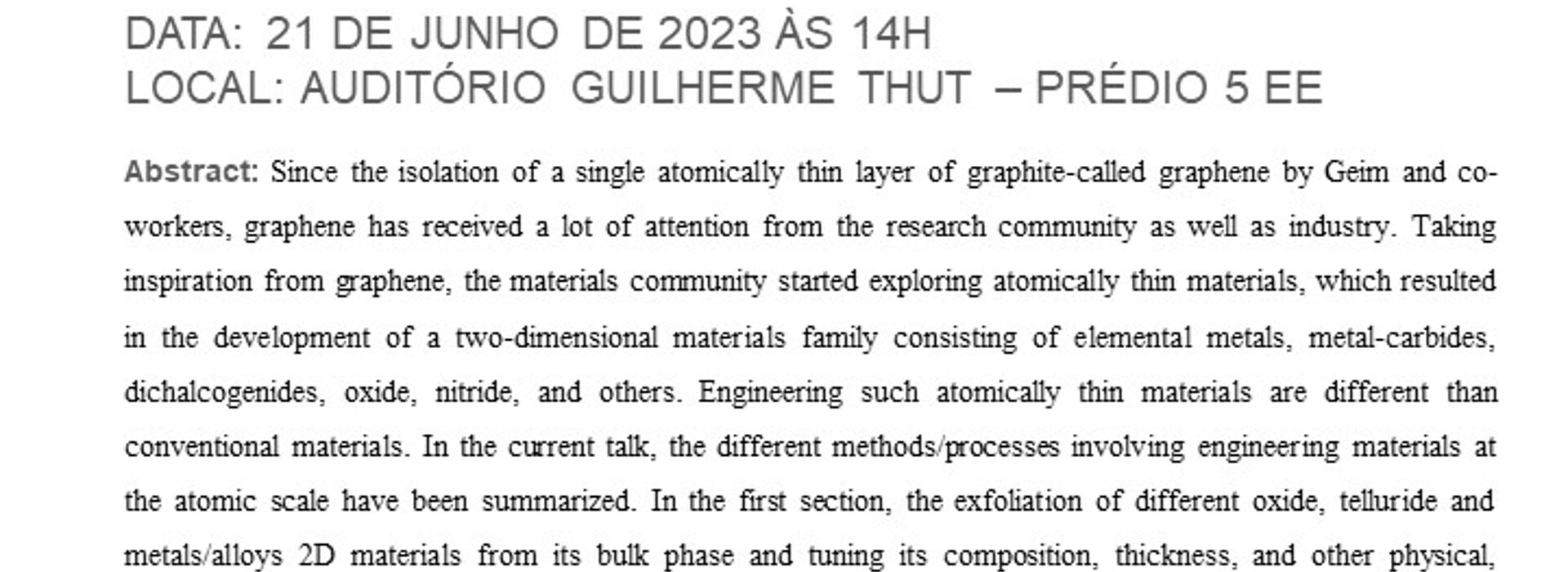 Seminário - Materiais de engenharia em escala atômica para aplicações de energia, meio ambiente e saúde2023-06-202023-06-20