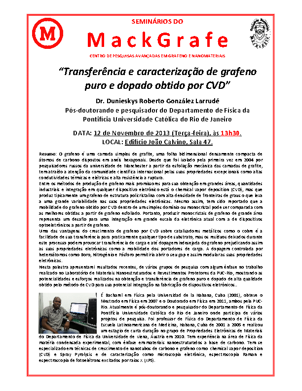 12/11/2013 - Dr. Dunieskys Larrude - Transferência e caracterização de grafeno puro e dopado obtido por CVD