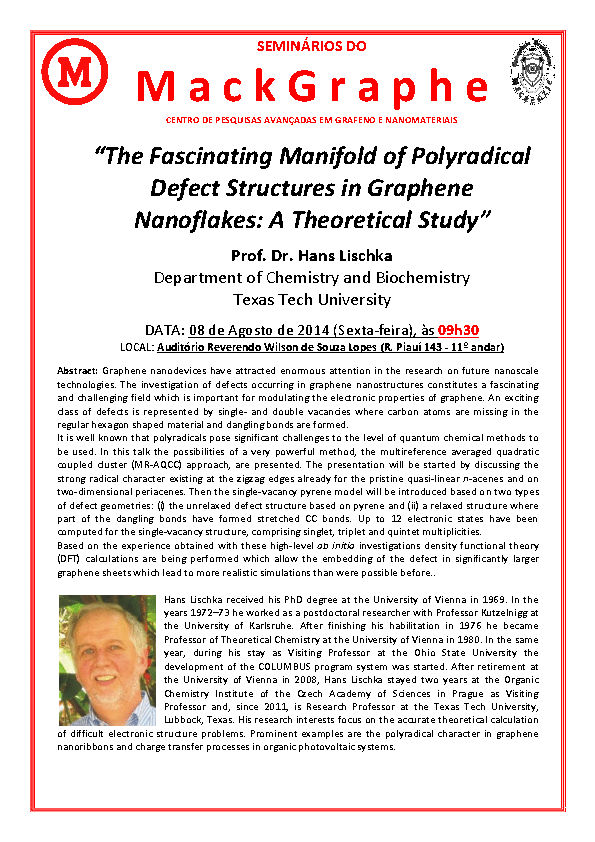 08/08/2014 - Prof. Dr. Hans Lischka - The Fascinating Manifold of Polyradical Defect Structures in Graphene Nanoflakes: A Theoretical Study