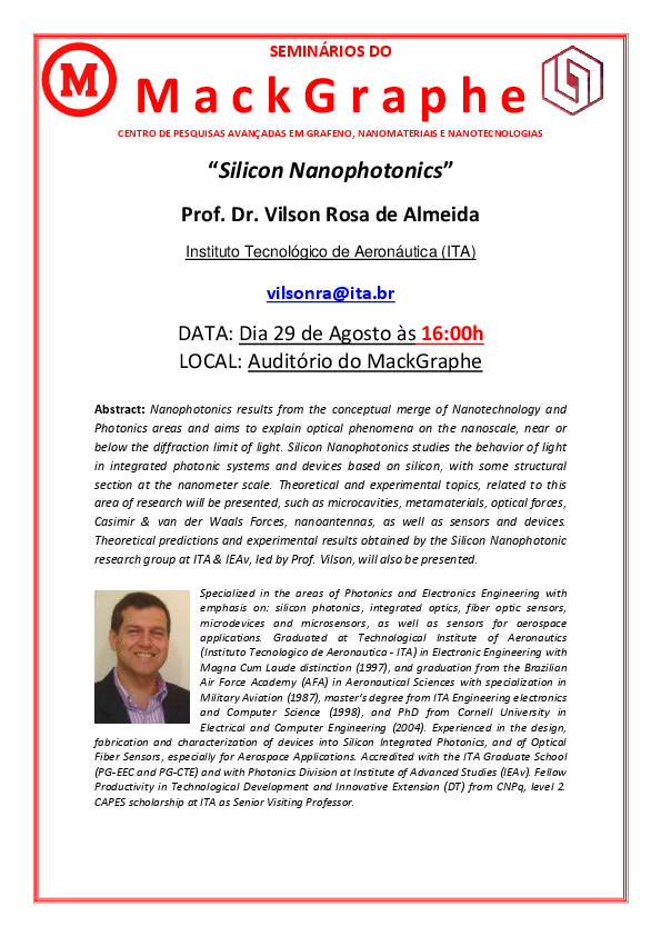 29/08/2016 - Prof. Dr. Vilson Rosa de Almeida - Silicon Nanophotonics