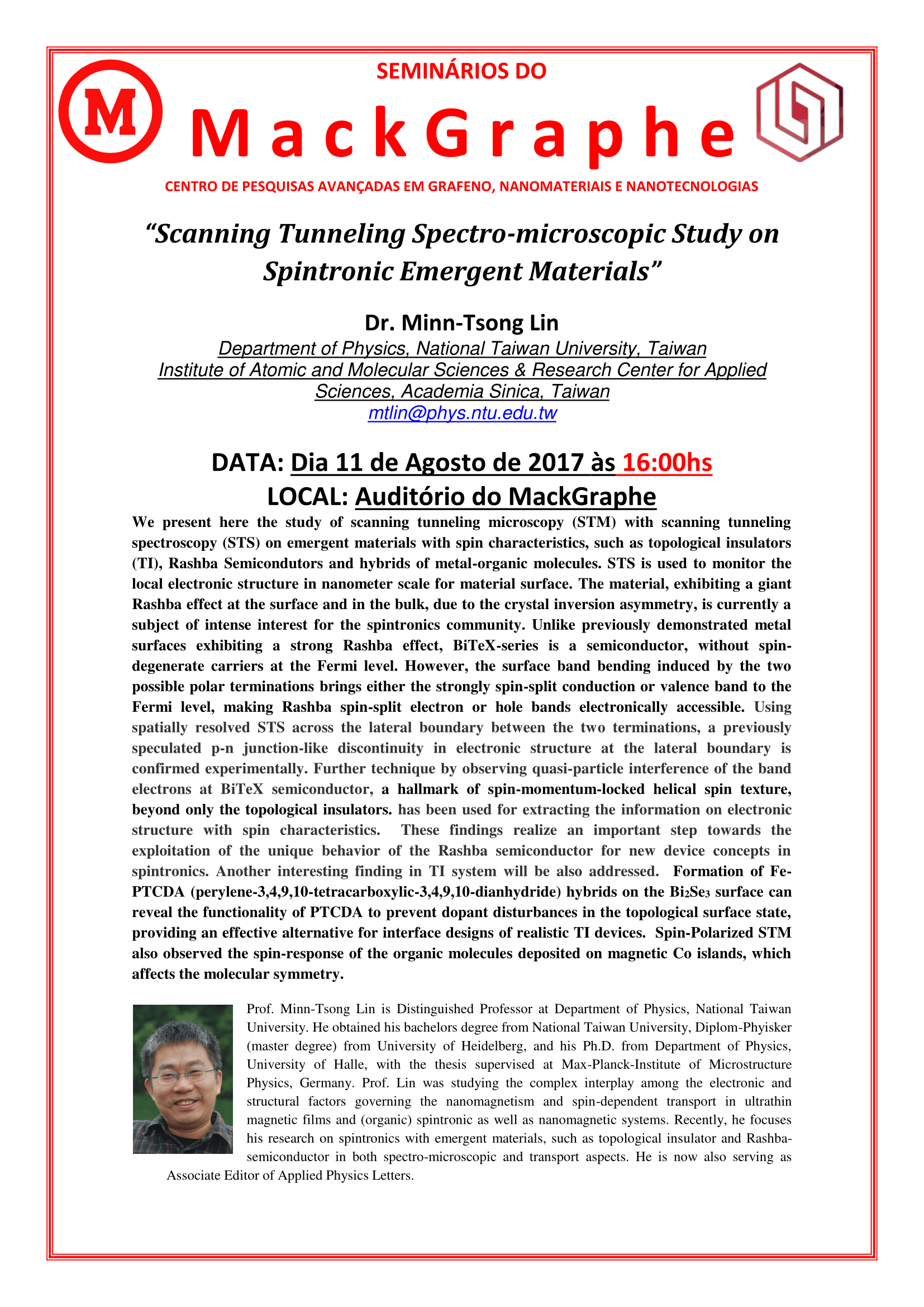11/10/2017 - Dr. Minn-Tsong Lin - “Scanning Tunneling Spectro-microscopic Study on Spintronic Emergent Materials”