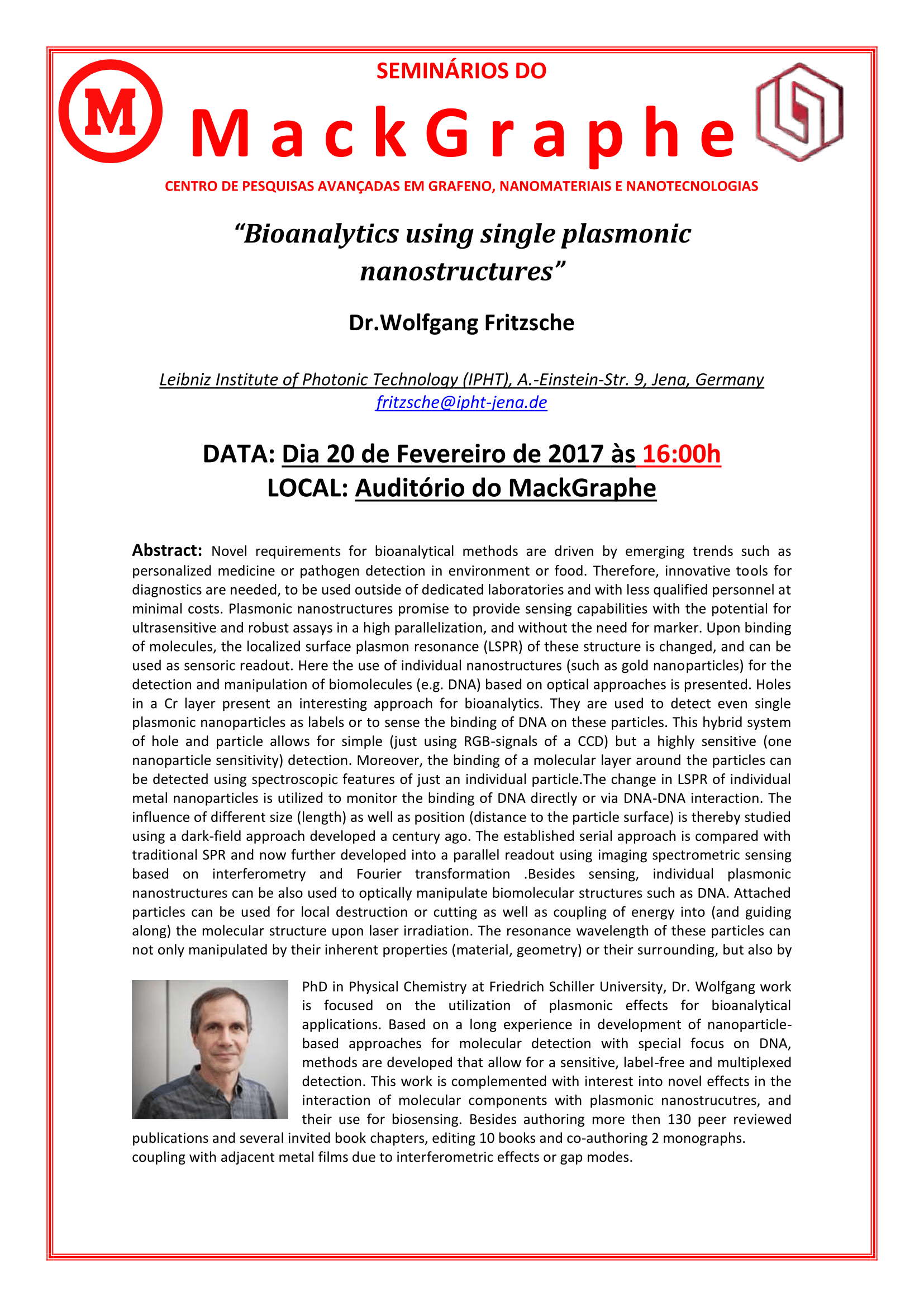20/02/2017 - Dr. Wolfgang Fritzsche - Bioanalytics using single plasmonic nanostructures